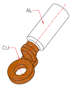 DTL-3 Bimetallic Lug is suitable for screwing non-tension aluminum connections using Cu-washers in humid areas and for pre-rounded sector shaped conductors.