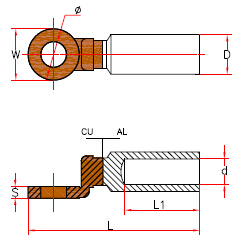 DTL-1 Cable Bimetallic Lugs are designed for connection of aluminum conductors to coppers busses, wires and cables in order to eliminate galvanic effect produced in results of direct connection copper and aluminum in the course of wiring and power load hookup.